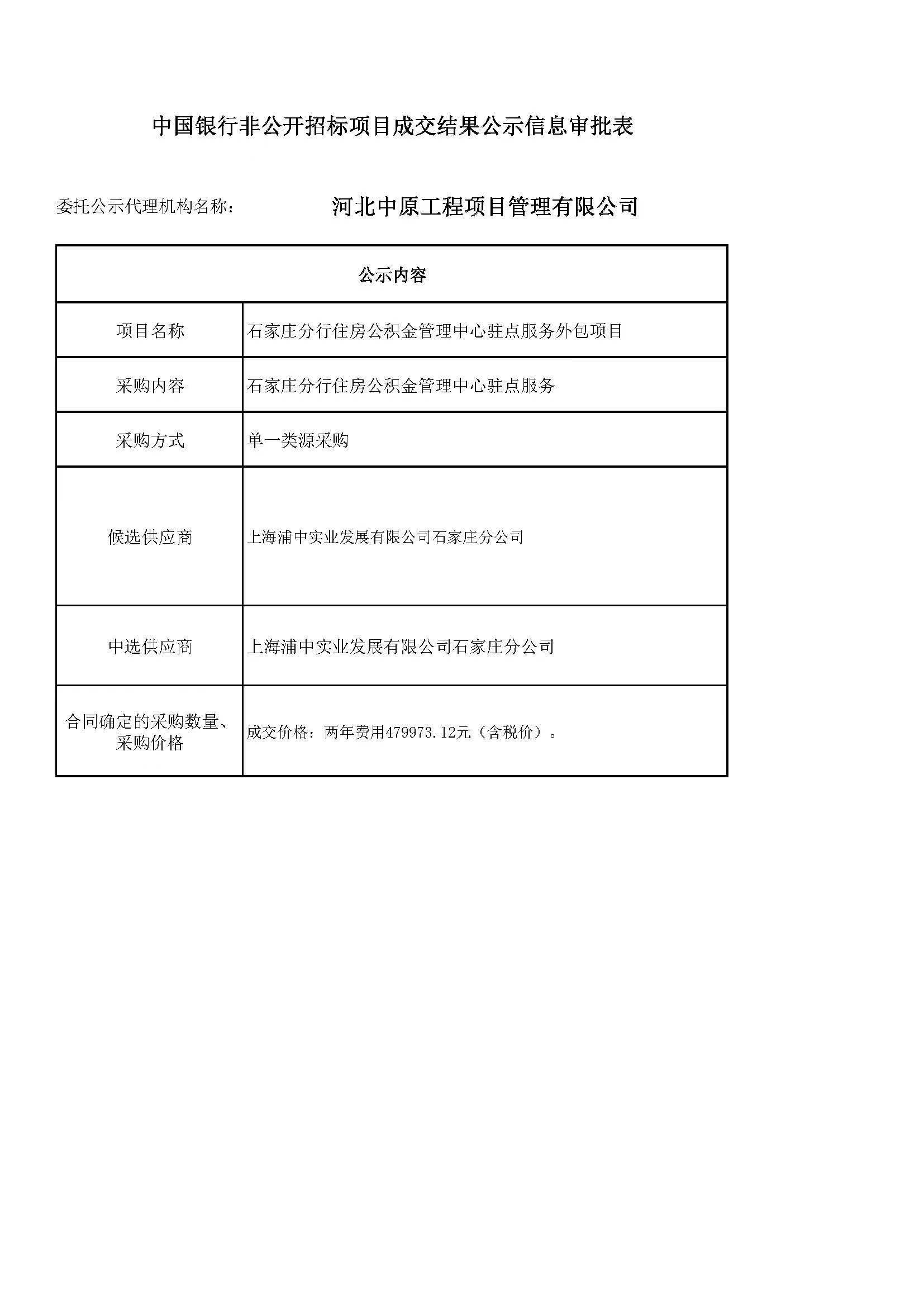 中国银行非公开招标项目成交结果公示信息审批表——石家庄分行住房公积金管理中心驻点服务外包项目