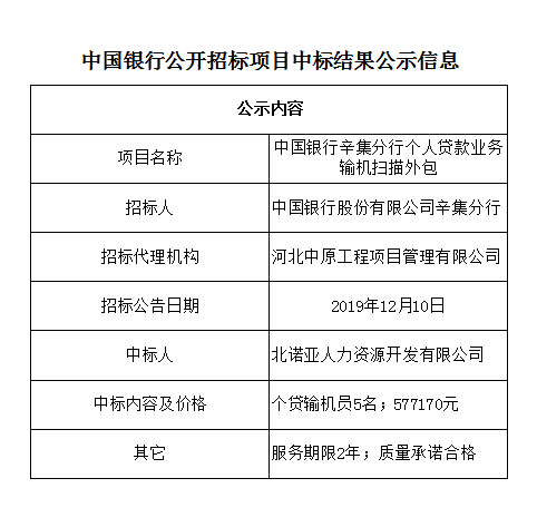 中国银行非公开招标项目成交结果公示信息审批表——辛集分行个人贷款业务输机扫描外包项目