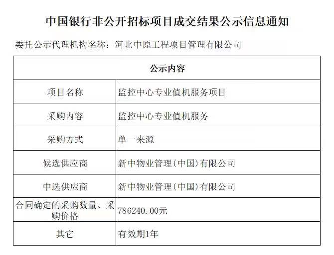 中国银行非公开招标项目成交结果公示信息通知——兴隆支行保安服务项目