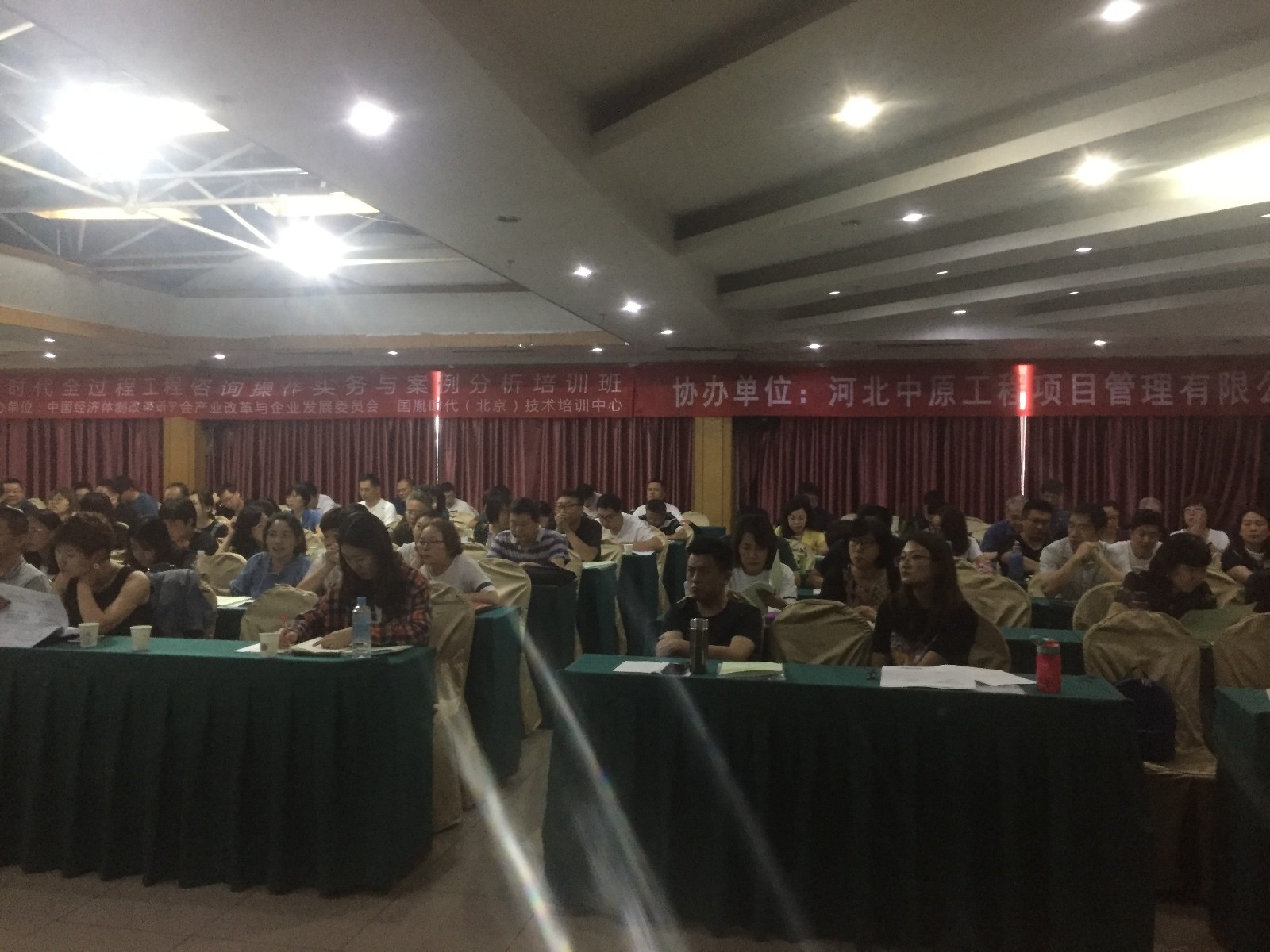 2019年7月20日至22日,由中国经济体制改革研究会产业改革与企业发展委员会国胤时代(北京)技术培训中心主办,我公司协办的“新时代全过程工程咨询操作实务与案例分析专题培训班”,在石家庄敬业大酒店如期进行。