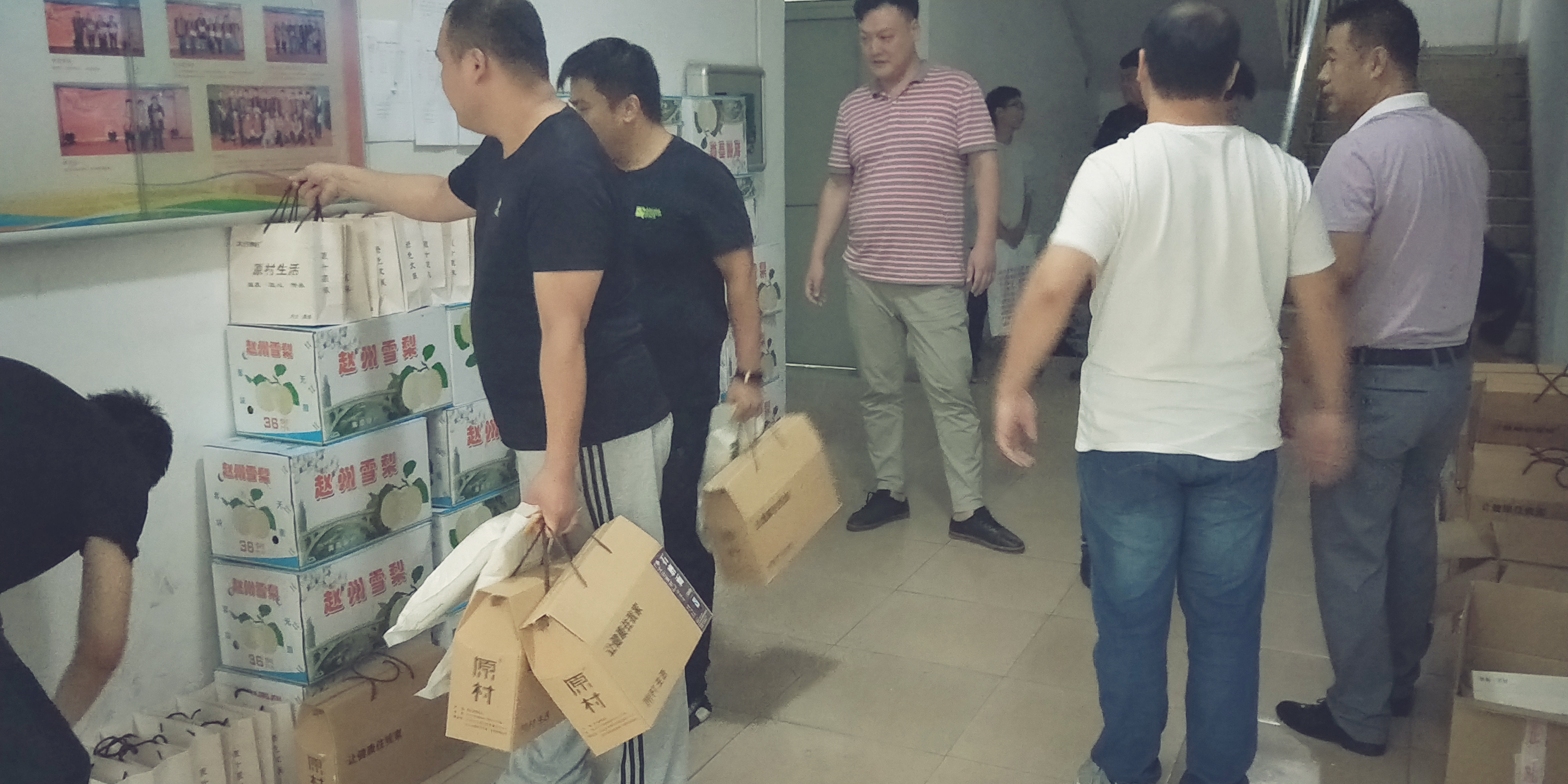 在接到公司综合办发放福利的通知后,同事们兴高采烈的来领取,虽然细雨霏霏,但发放现场气氛热烈,大家喜笑颜开,配合默契,各负其责,幸福之情溢于言表。