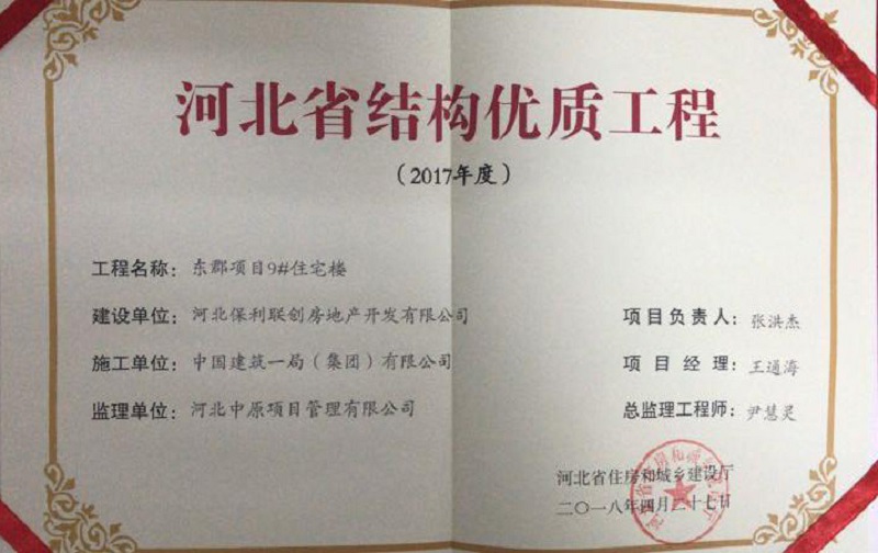 在所有参建单位的通力合作和精心组织下,本项目也受到了保利集团公司和政府部门的认可和嘉奖:于近日在保利集团2018年第一季度集团第三方评估中,二标段以94.736分的好成绩名列河北公司第一名;同时一标段的4#楼,二标段的9#楼的结构部分也受得政府质量监督部门的高度认可,喜获“河北省结构优质工程”这一殊荣。